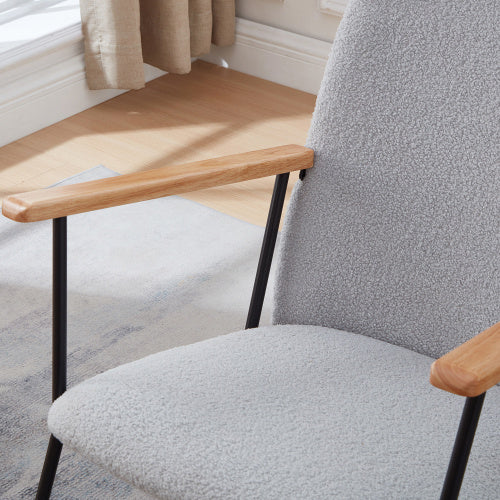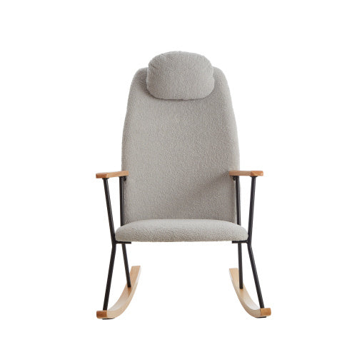 Adjustable headrest rocking chair, teddy fabric upholstered gliding rocking chair, high backrest, modern rocking chair upholstery chair comfortable side chair for children's room, bedroom, living room (light grey)