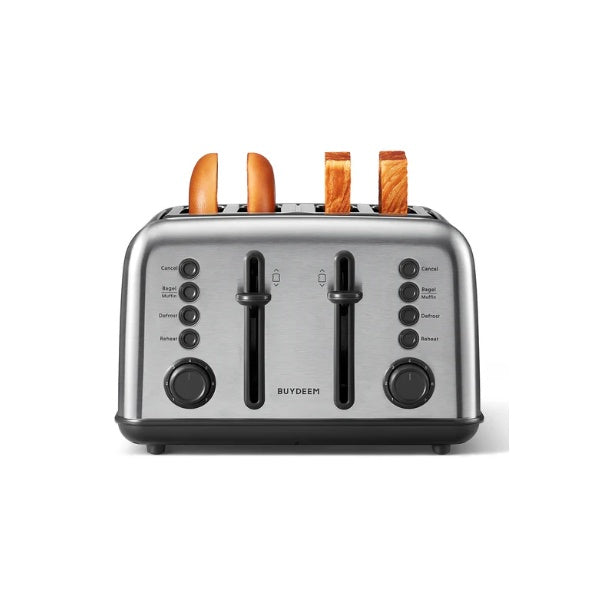 Equipped with four extra-wide slots (1.4 inches) and self-centering guides, this toaster accommodates various bread types while its compact design saves valuable counter space.